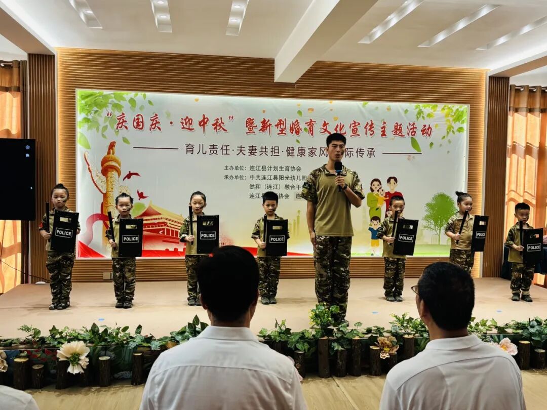 在国庆、中秋节来临之际,连江县计生协在阳光智慧幼儿园举办了以“育儿责任 夫妻共担 健康家风 代际传承”为主题的“庆国庆·迎中秋”暨新型婚育文化宣传活动。
