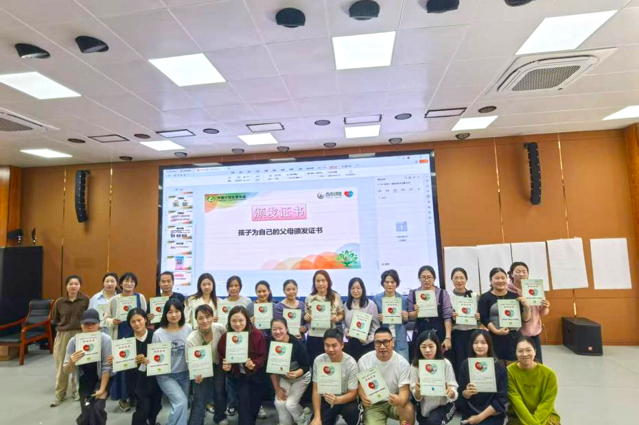 培训过程中,家长们积极参与讨论、认真演练沟通技巧,纷纷表示收获颇丰。培训课程结束后,孩子们为完成全部课程的家长颁发结业证书,亲子共同按下手印,定格这份成长与陪伴的珍贵记忆。