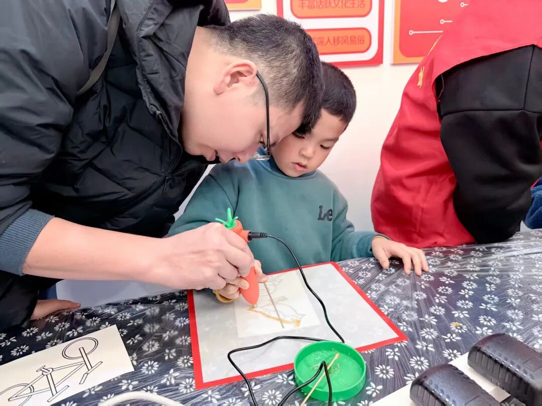 活动伊始,老师介绍了糖画这一传统非遗技艺,带领孩子们感受中华传统工艺的匠心精神。随后绘本教学环节,老师巧妙融入健康元素,引导孩子们在思考故事逻辑的过程中,树立健康生活意识。理论学习过后,趣味实践与健康互动环节同步开启。亲子家庭不仅亲手体验传统糖画制作,勾勒形态各异的甜蜜造型,感受非遗文化的独特韵味;更参与了融合健康理念的钓鱼、保龄球、射箭等趣味游戏 PK。