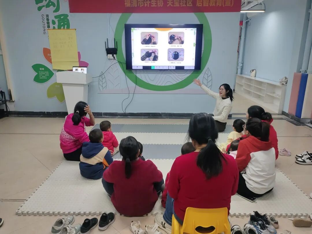 12月6日,福清市计生协、龙江街道天宝社区、福清市南江滨幼儿园在天宝社区“向日葵亲子小屋”联合开展“育见美好 快乐成长”公益早教进社区活动,带着宝贝们开启了一场“蜘蛛穿鞋子”的早教手工之旅。
