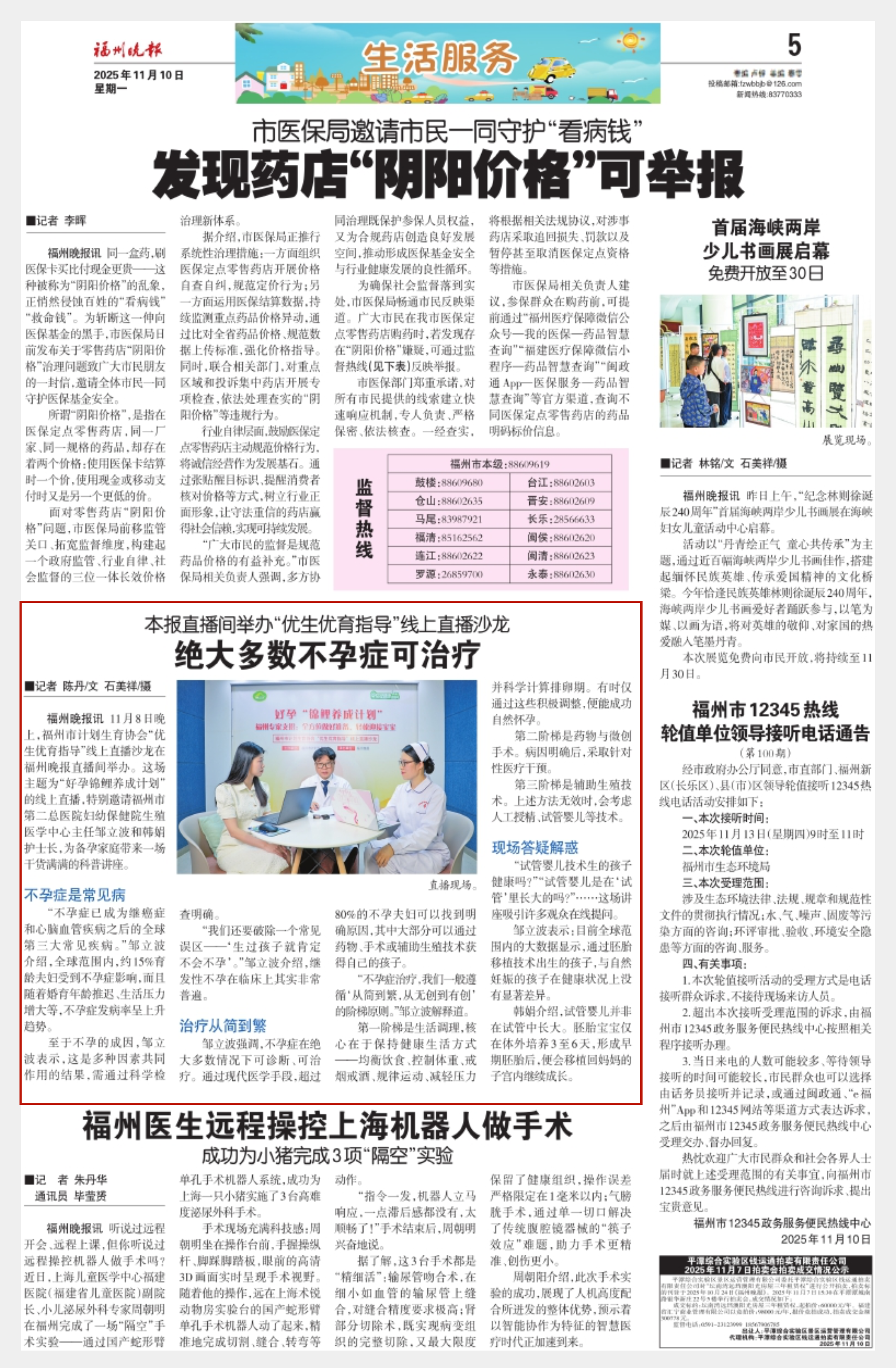 福州晚报讯 11月8日晚上,福州市计划生育协会“优生优育指导”线上直播沙龙在福州晚报直播间举办。这场主题为“好孕锦鲤养成计划”的线上直播,特别邀请福州市第二总医院妇幼保健院生殖医学中心主任邹立波和韩娟护士长,为备孕家庭带来一场干货满满的科普讲座。
