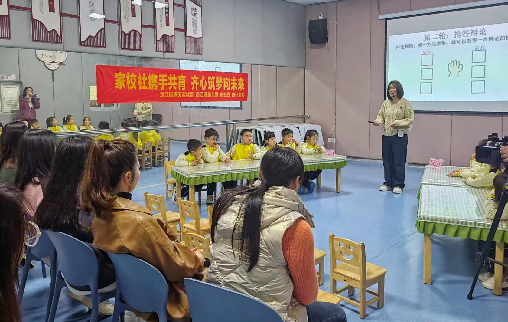 3月15日,福清市计生协联合市妇联、南江滨幼儿园在天宝社区开展“家校社携手共育 齐心筑梦向未来”辩论赛,12组南江滨幼儿园大班亲子家庭参加。