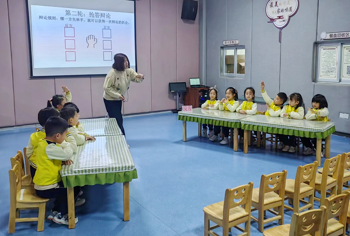 现场,南江滨幼儿园林老师以手机的日常使用场景为切入点,引导孩子们就“手机好还是不好”这一辩题展开激烈辩论。随后,通过绘本故事让孩子们认识到手机的负面影响,同时邀请孩子们和家长共同围绕“如何正确手机”展开互动,交流心得。