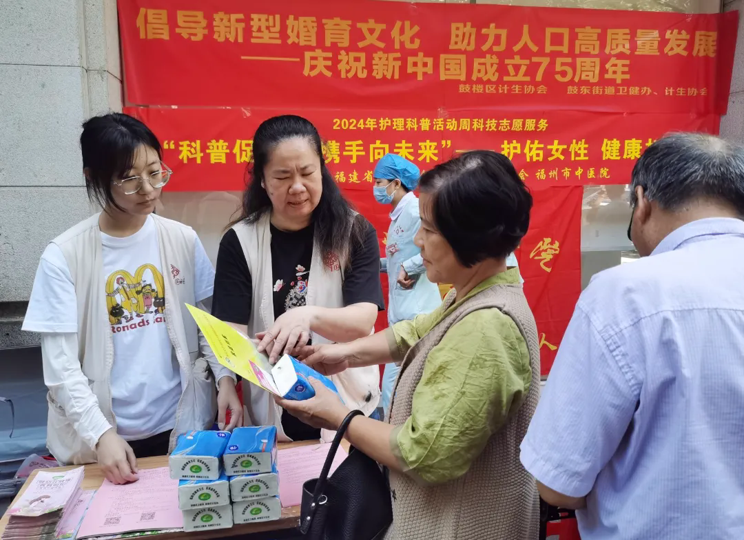 5月6日,鼓楼区计生协、鼓东街道计生协联合福州市中医院在尚宾路开元社区文化宣传广场开展“倡导新型婚育文化 助力人口高质量发展——庆祝新中国成立75周年”5·29会员活动日义诊宣传活动。