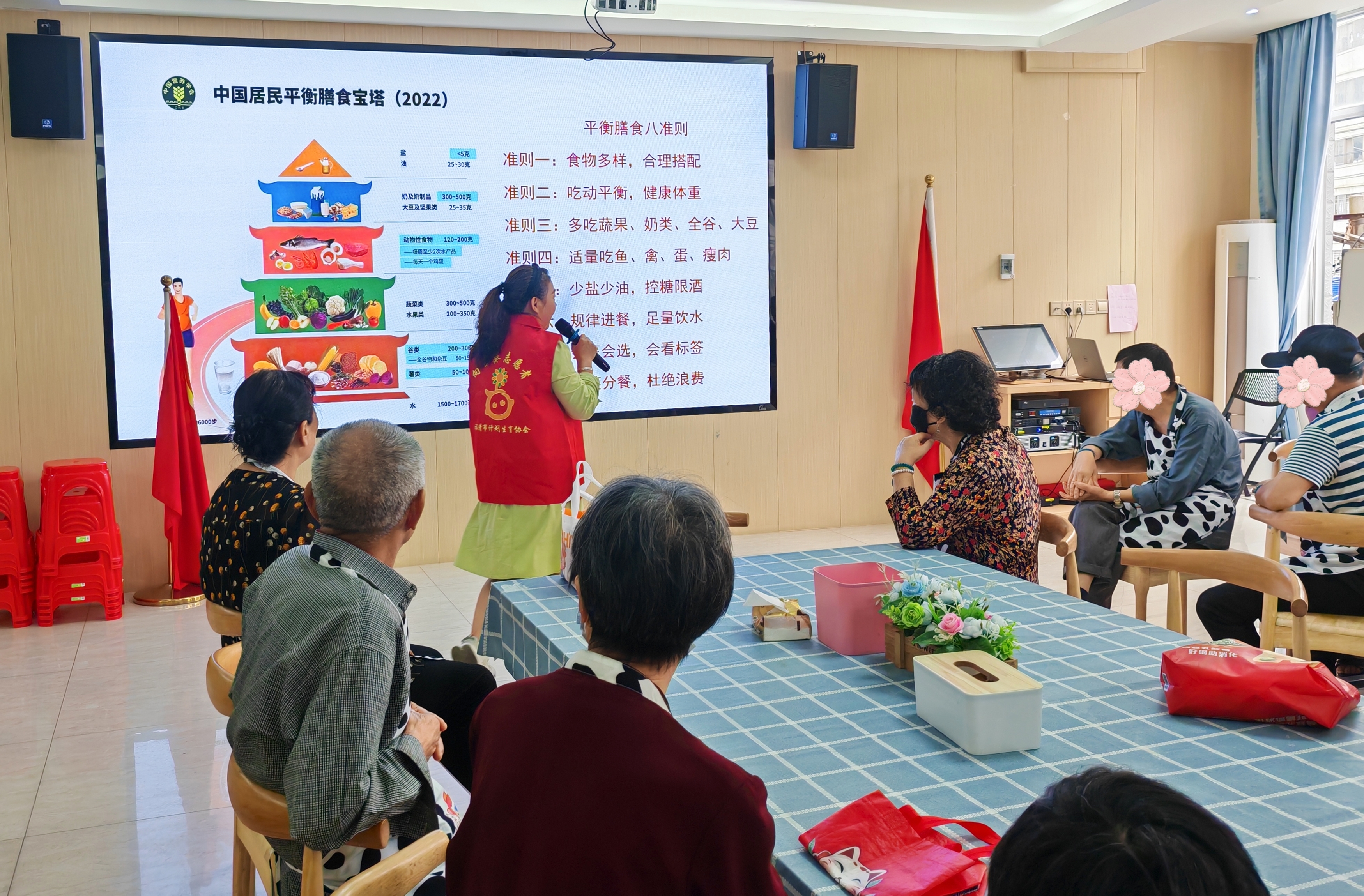讲座现场,计生协志愿者针对中老年人的健康需求,为大家讲解健康四要素、居民平衡膳食宝塔及中老年人营养需求等健康知识,并进行健康知识问答互动,让大家对养生健康有进一步地认识。