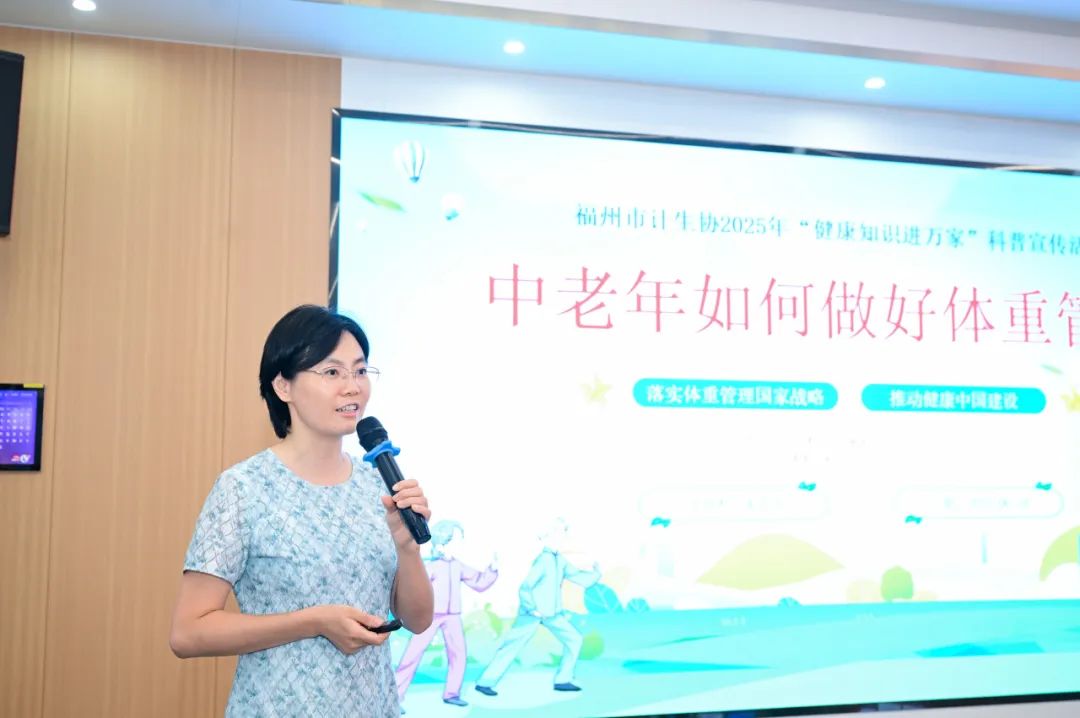 启动仪式后,今年首场科普宣传公益讲座正式开讲,聚焦当下最热门的“体重管理”话题。市计生协家庭健康促进专家库专家、福州市第一总医院内分泌与代谢病科、医学营养减重门诊主任张芳芳展开生动的科普,为中老年人如何管理体重支招。