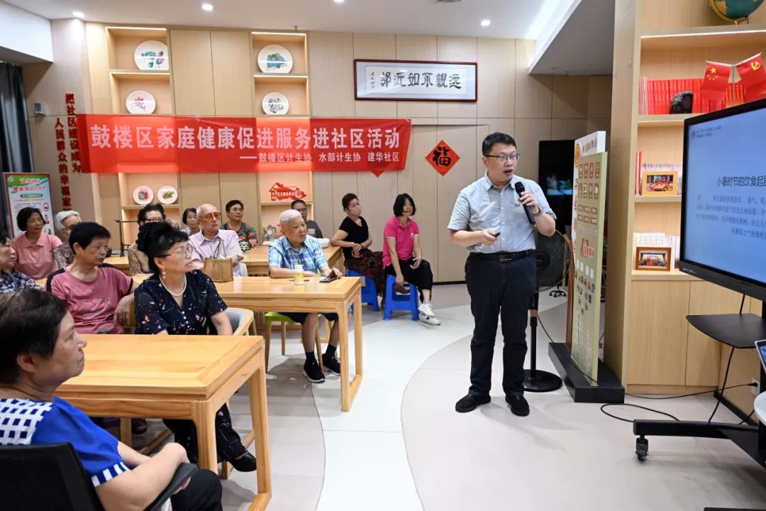 7月7日是小暑节气,由市计生协主办的福州市2025年—2026年“健康知识进万家”健康科普宣传在福州市“健康知识进万家”科普宣传点——鼓楼区水部街道建华社区举行。福建中医药大学附属第二人民医院内分泌科主任赵钟文教授带来了“小暑节气养生法”讲座,吸引二十多名居民参加。